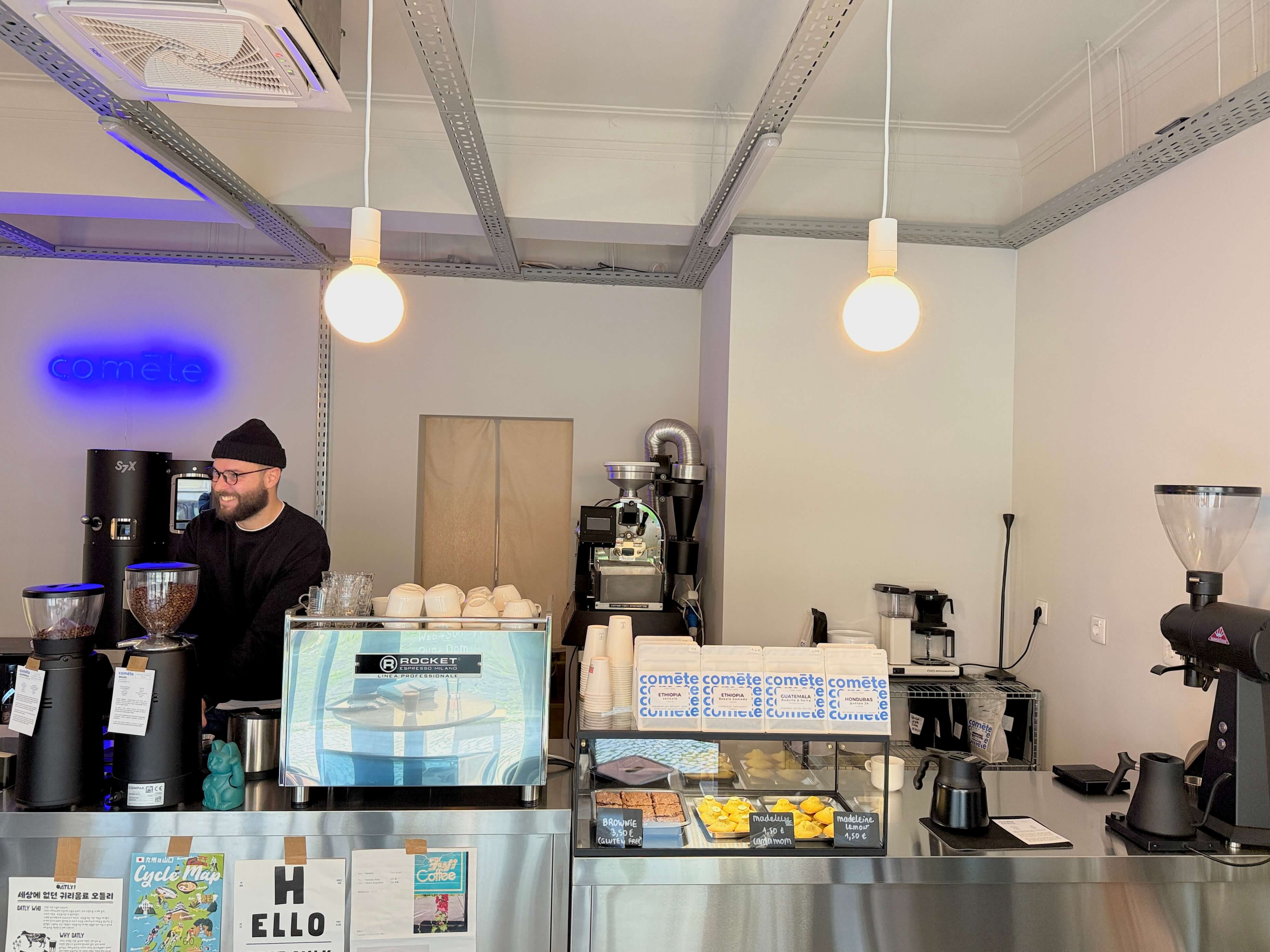 During my recent visit to Lisbon, I was on a mission to find the most exciting coffee places of the moment. My previous visit to the Portuguese capital dates back to 2008 and obviously, a lot has changed since then. After having breakfast at our hotel, I grabbed my friend Maxine and jumped in a Bolt to go visit Comēte Coffee Roasters. I had heard much about them and let them know via Instagram that I would swing by.