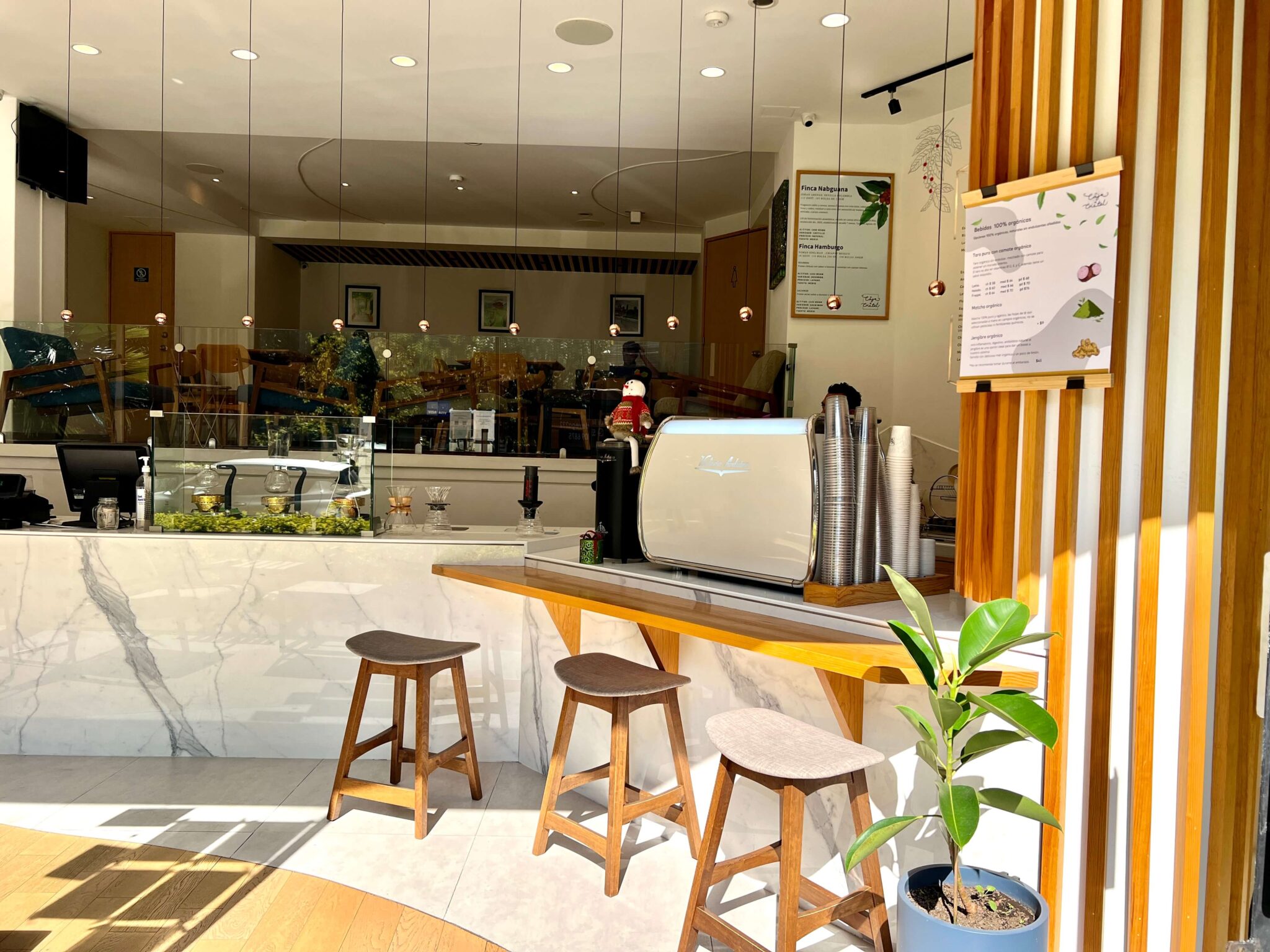 The name, La Caja de Cristal stands for box of glass, which apparently carried a coffee seedling aboard a ship from Europe to Martinique as coffee first made its way across the Atlantic Ocean. The story is visualised and written out across one of the main walls inside the café, which also doubles as a small coffee roastery.