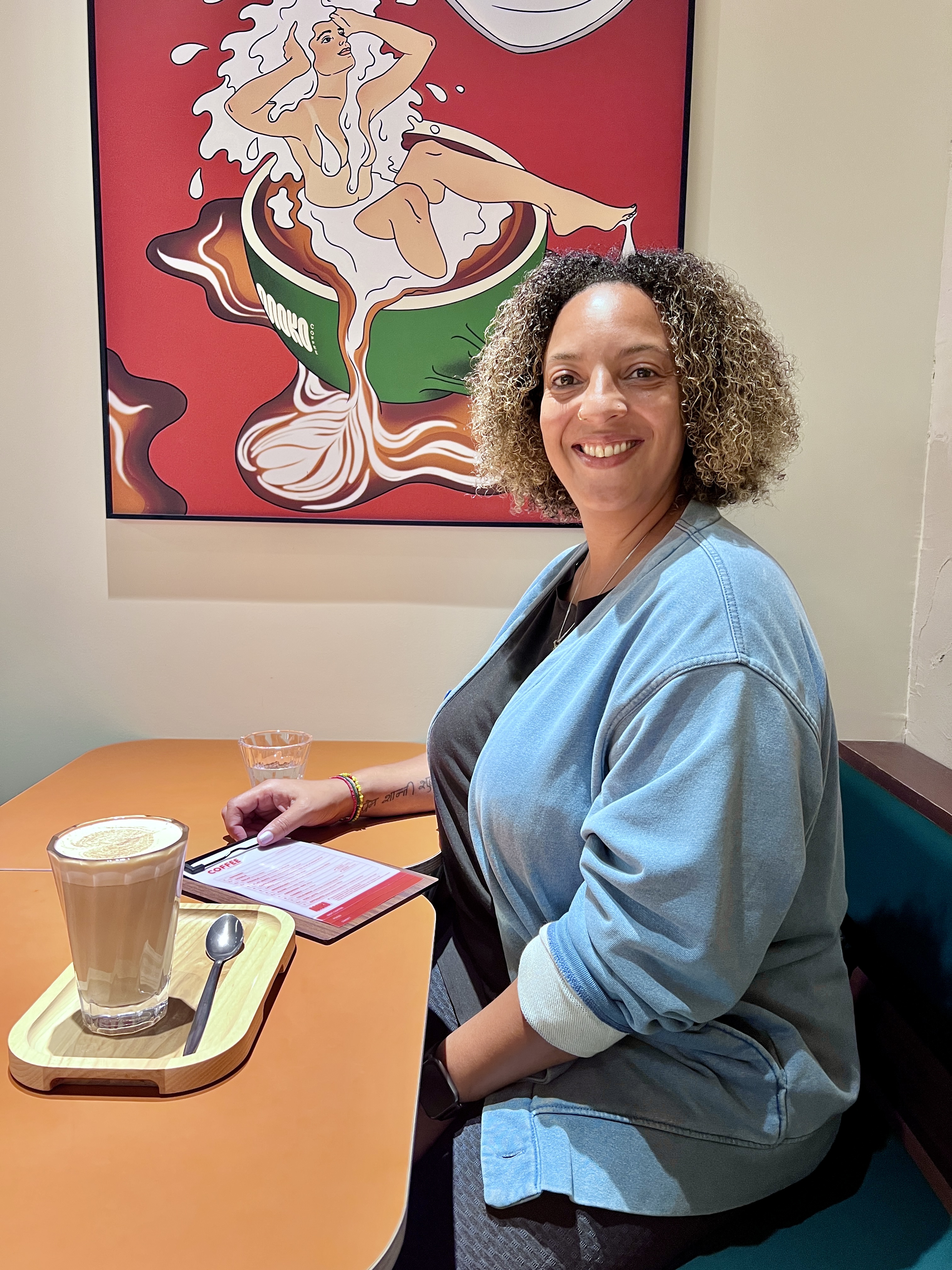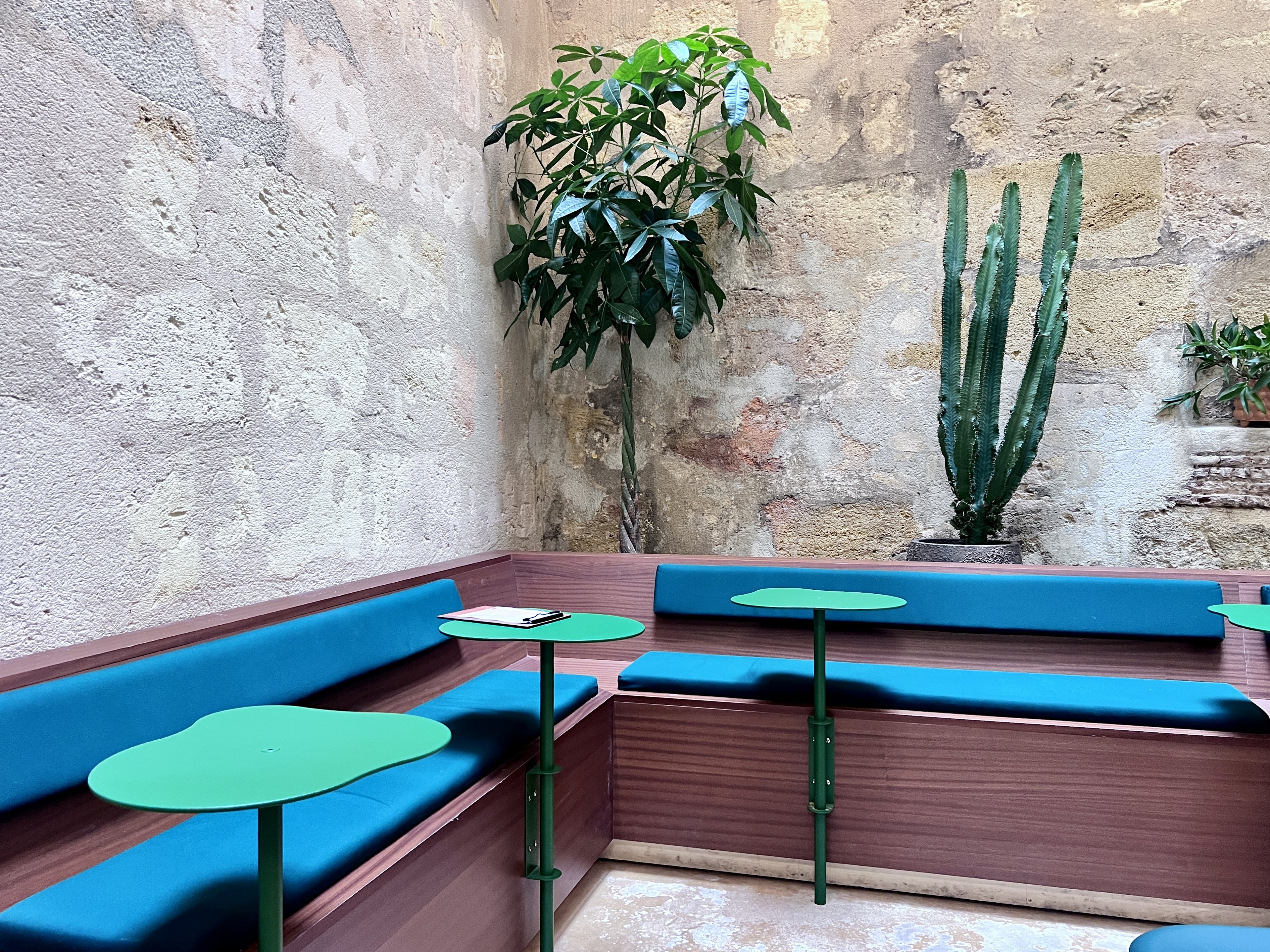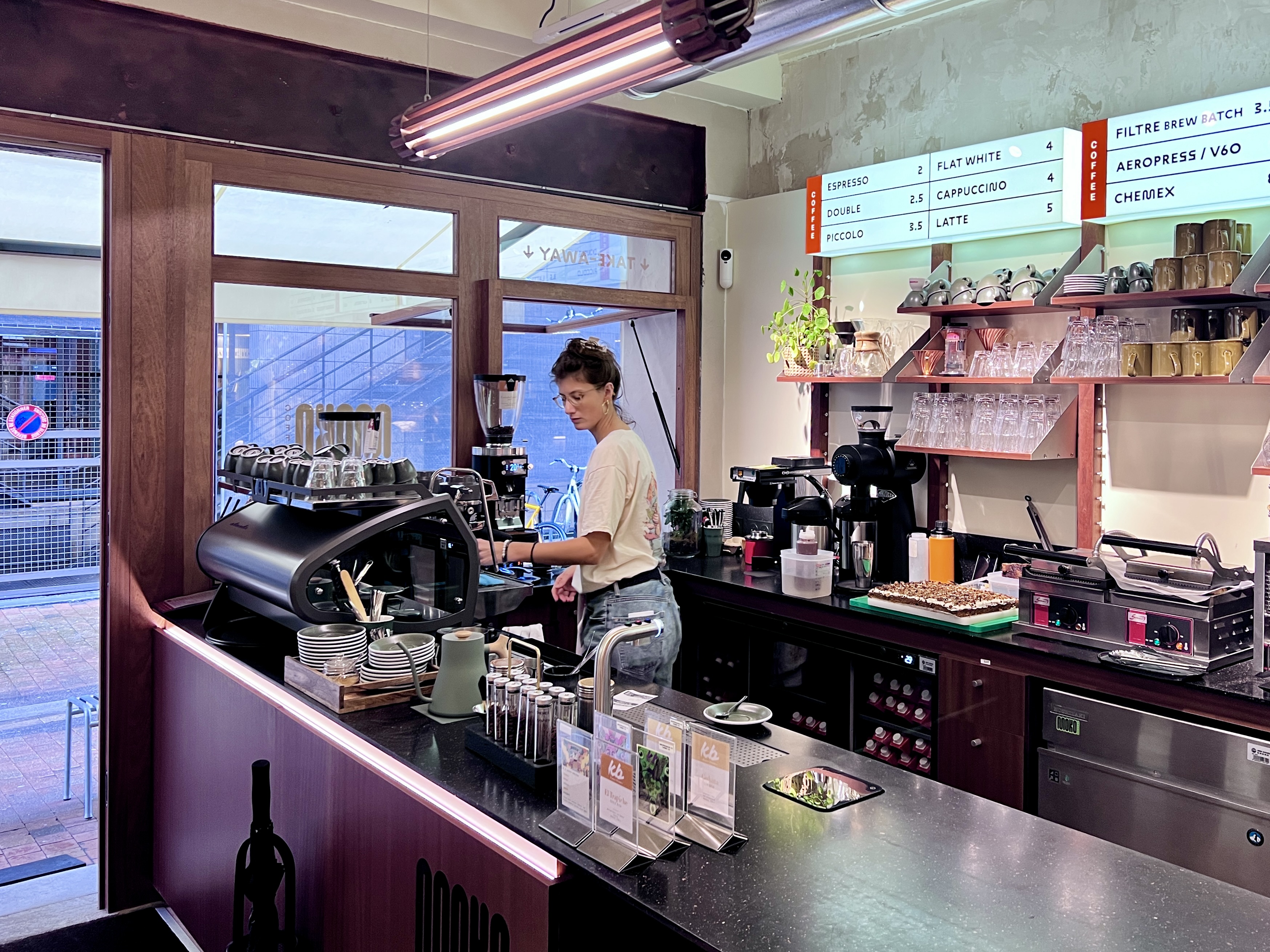 At the end of 2023, he finally found the right space to realize his vision and working with Dircks, he created a celebrated place that attracts a mixed crowd of creatives, visitors, expats and other folk. The big coffee bar sits along the left of the space and I particularly loved the menu on the wall. At the back, there is a square shaped space with more seating.